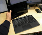 ディスプレイ下のラッチを解除すると、キーボードドックとディスプレイが分離する。