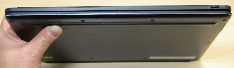 キーボードドックの背面。Core M プロセッサー を搭載していることだけあってファンレス設計であり、動作音が静か。ストレージにはHDDではなくSSDを搭載しているので、そもそも回転音というものがない。
