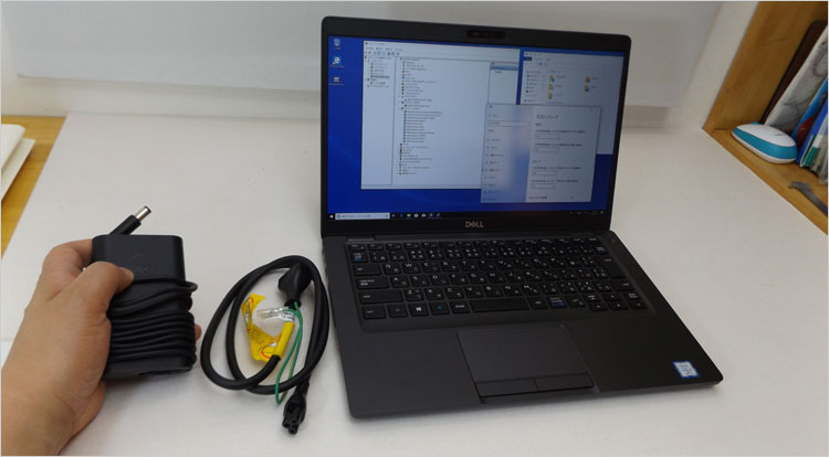 このLatitude 5400実機では、「65W AC アダプター, 7.4mm Barrel 」というやつが付属。他には90Wのタイプや、65WでコネクタがUSB Type-Cのタイプが選択できる。