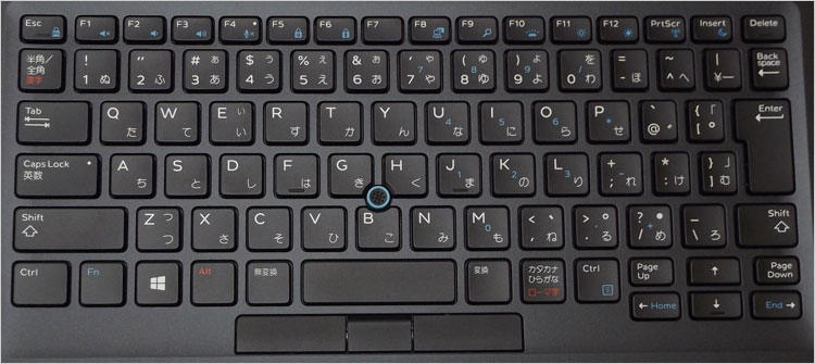 バックライト・キーボードを装備。プロジェクタ使用時の会議室など暗い場所で活躍する機能。兼用となっているファンクションキーで、ライトのオン・オフおよび、2段階の調光ができる。かすれはなく見た目も良好。
