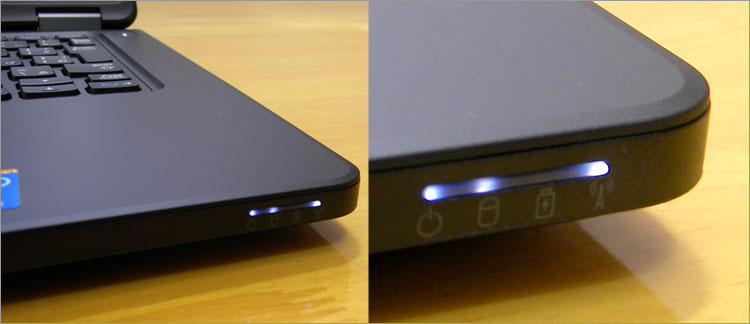 前面にはアクセス・ライトが集まっている(電源、ストレージ、バッテリ、ワイヤレス)。