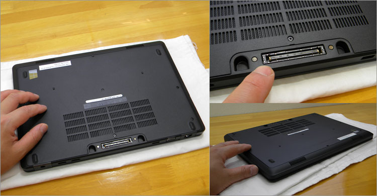 オプションのEシリーズドッキングステーションとジョイントできる製品。180度オープン可能なディスプレイであるため、狭いデスク上でも外部モニタ接続がやりやすい。
