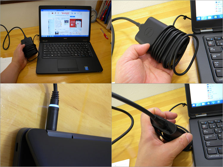 Latitude E5450レビュー実機に付属されていたACアダプタと電源ケーブル。注文枠でいくつか選択できる。