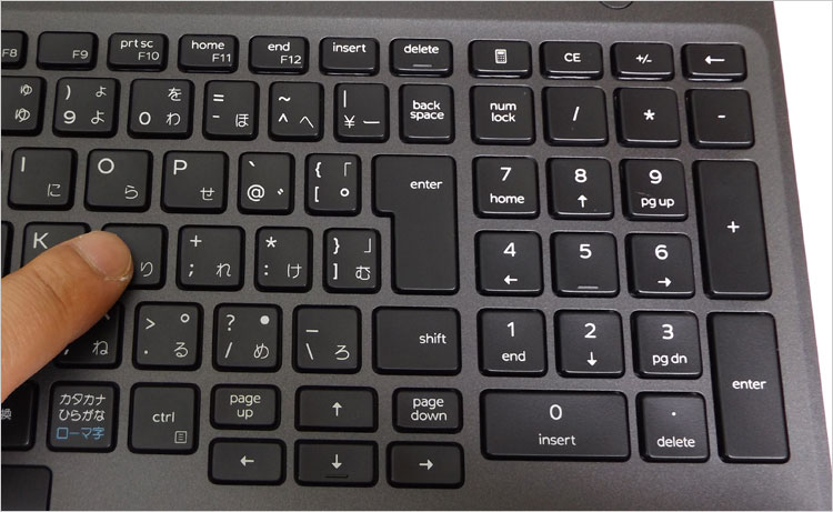 Latitude 5500におけるホームポジションの様子。テンキーがあるのでやや左寄りのスタイルになる。