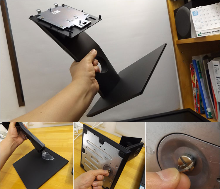 しかし今回は専用アームを取り付けるので関係ない。上から差し込んでカチッとはめる工具レス機構。アームにはケーブルを通すホールが有り、無線環境を整えればケーブルは1本だけで済む。