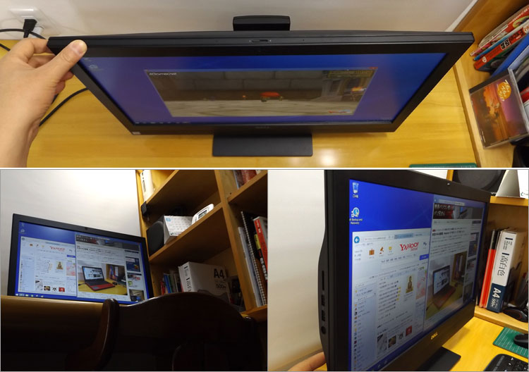 こんな角度からでも画像が認識できる。見たところ安価なTNパネルではないと思うが、肝心なことはDELLサイトで明記してもらいたいところだ。