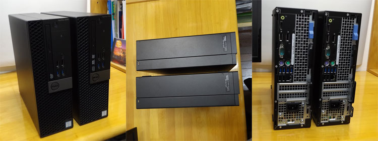 OptiPlex 7040スモールとOptiPlex 5040スモールを並べた様子。採用メモリの規格が違うので、別物なのだろうが、装備しているオンボード端子は同じである。