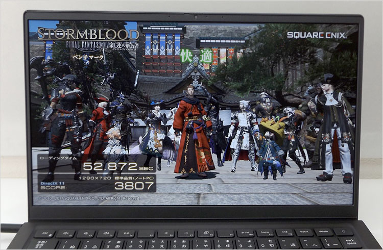 ファイナルファンタジーXIV: 紅蓮のリベレーター (1280×720 標準(ノートPC) DirectX 11 フルスクリーン)では、3807。実質的な快適プレイには5000ほしいところだが、3807なら実質的なプレイは可能なようだ。以下、今回の構成におけるベンチマークテスト結果のまとめ。ゲームタイトルのリンクをクリックすると、当方過去のレビューPCと比較できる。