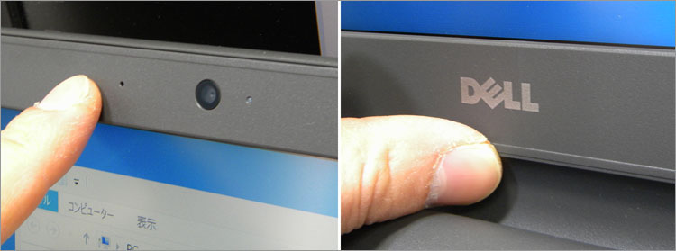 ディスプレイベゼルにはWEBカメラを内蔵。DELLロゴはただのプリント。