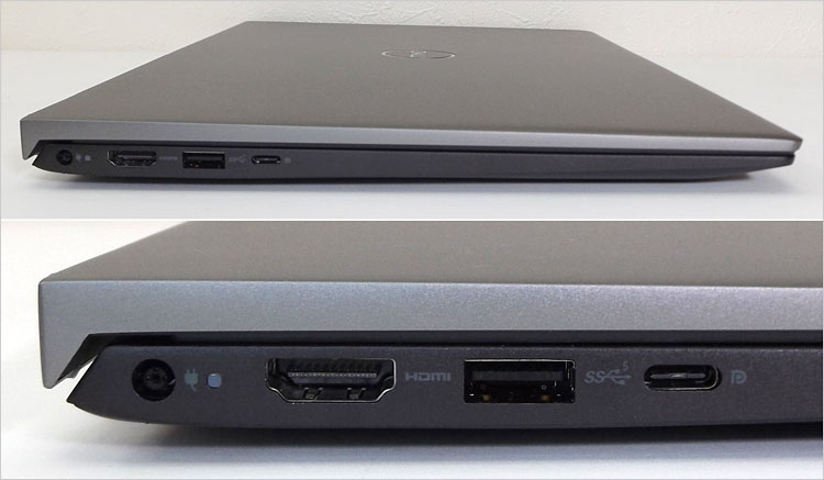 Vostro 5515の左側面には、電源コネクタ、電源ライト、HDMI端子、USB 3.2-Gen1(5Gbps)端子、USB Type-C端子を実装。