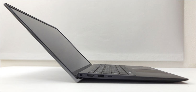 USB 3.2 - Gen2など最新の高速インターフェースはないが、15型ノートとして基本的な端子を実装している印象。Power Deliveryがあるので、市販のType-CコネクタのACアダプタも使える。また、最近はmicroSDカード・スロットが多いが、通常のSDカードスロットを装備しているところが良い。