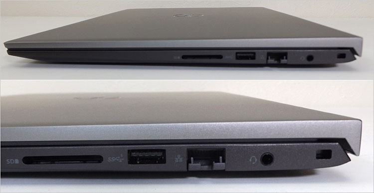 テンキー付きのキーボードを搭載。基本的なインターフェースは実装しており、さらにギガビットイーサーLAN端子や、Power Delivery対応のUSB Type-C端子を実装している。最近はmicroSDカード・スロットの実装が多いが、Vostro 5515は通常サイズのSDカードスロットを装備。光学ドライブは非搭載。 排気システムがやや心もとないが、そもそも内蔵GPU仕様で完結しているのだろう。