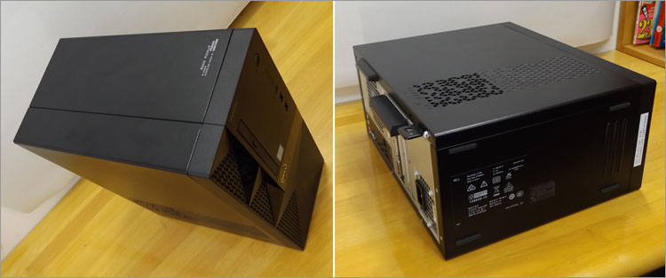 | 従来のミニタワーよりも小型化した筐体で、拡張スロットを4基実装する。(PCI Express x16が1基、PCI Express x1が2基、PCIスロットが1基)。光学ドライブも内蔵している。Skylake設計で第6世代Core i5搭載可能モデル。前面パネルは多面的なモダンデザイン。そして防塵フィルタ付きの吸気口を配置している。 |
