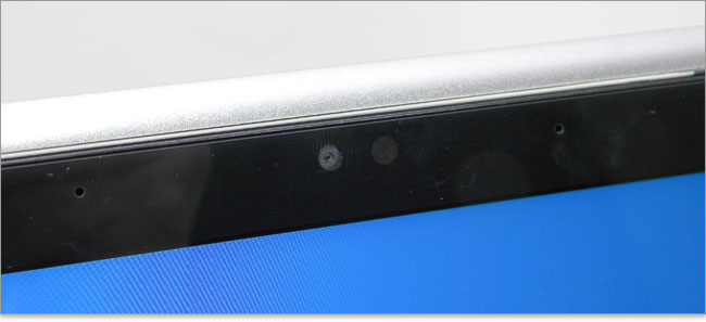 130万画素Webカメラを内蔵。左右にデュアルマイク内蔵。右側には環境照明センサーを内蔵しています。