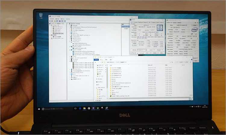 XPS 13-9360の操作風景。バックライトキーボードを搭載しているが、撮影し忘れた。筐体そのものはSkylake設計の前モデル・XPS 13-9350と変わっていないので、過去のレビューを参考にしてほしい。