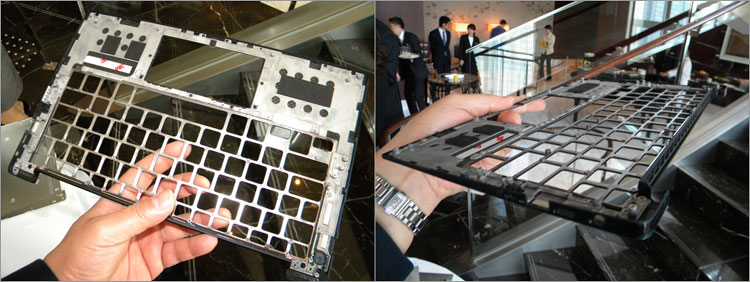 発表会のあと、XPS13における加工段階のパーツを展示していただいた。