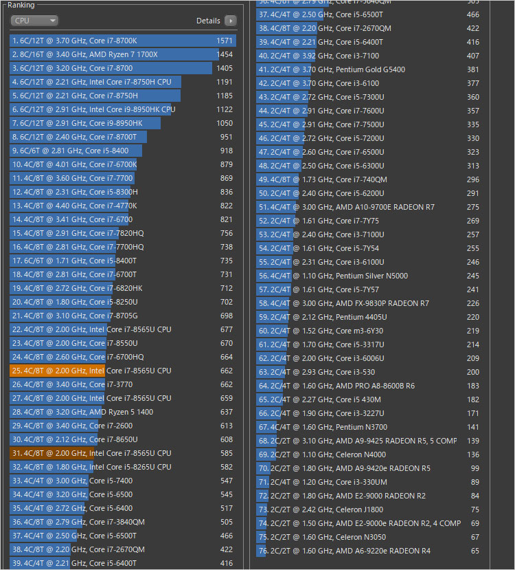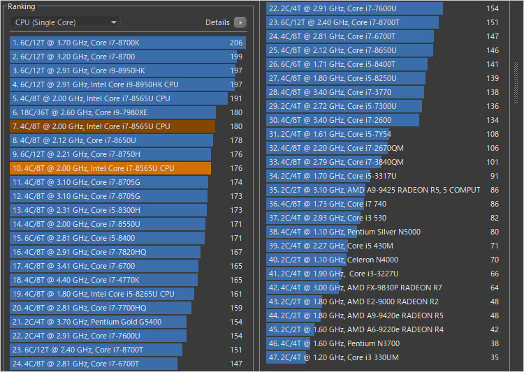 シングルスレッドを見ると、スコアは高くターボブースト高さゆえの効果かと思われる。シングルスレッドのアプリで効果が期待できそうだ。