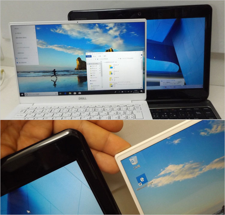 パームレストの面積は違ってくるが、これは優劣いいがたし。ついでにTNパネルとIPSパネルの視野角の違いも比較できる。
