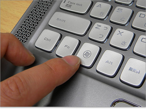 DELLノートでは大概、幅狭にされがちな「Fn、スタートキー、Alt」キーですが、XPS 14z(L412z)では通常のワイドサイズ。