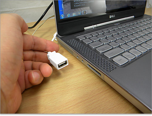 端子の少なさがXPS 14z(L412z)最大のデメリットかもしれません。背面にUSB 3.0 ×1つ、USB 2.0 ×1つを装備し、左右側面にはUSB端子が一切ありません。モバイルと割り切れればいいですが、据え置き用も重視しているなら、使用状況をシミレーションしておくことを薦めます。