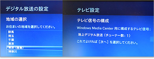 これで地デジを観るための、Windows Media Centerの設定が終了。