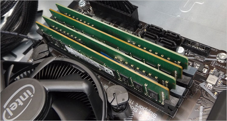 XPS 8900から持ってきたメモリ(DDR4-2133MHz)を搭載する。メモリ2枚セットで搭載するデュアルチャンネルでは、まず優先するスロットがある。4スロットある場合、ほとんどが2列目と4列目のセットとなる。マザーボードに記載されている場合が多いが、このマザーではA2とB2の位置(FIRST)と書かれている。ただ、読み込む順番がファーストなのであり、適当な位置にメモリを搭載しても起動はする。効率的ではないだけ。4枚搭載するならファーストとか関係ないが、相性の問題から同製品のメモリで対になるようにしよう。