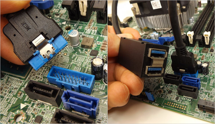 前面に装備されるUSB3.0端子~搭載省略というか、新マザーではUSB3.2-Gen2 なので使えなかった。 ※画像:XPS 8900のマザー