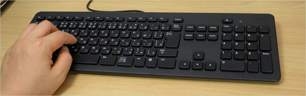 キーの押下。メンブレン式特有のくにゃっとした打鍵感。