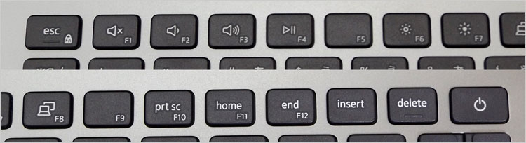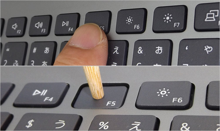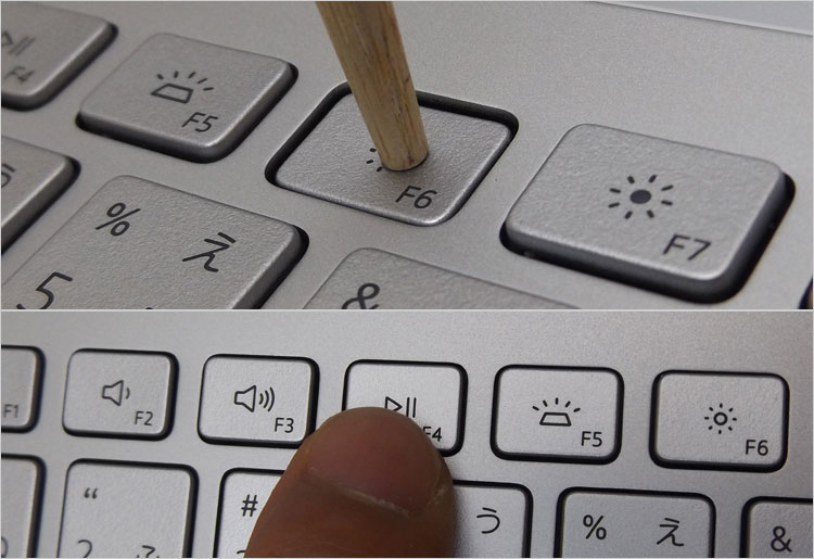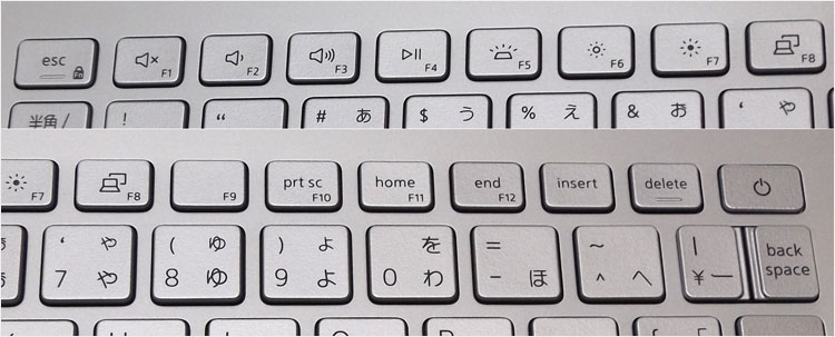 F5のところには「バックライト・キーボード機能を示すマーク」が無く、無地になっている。つまり機能が省かれている。その他のところは同じである。