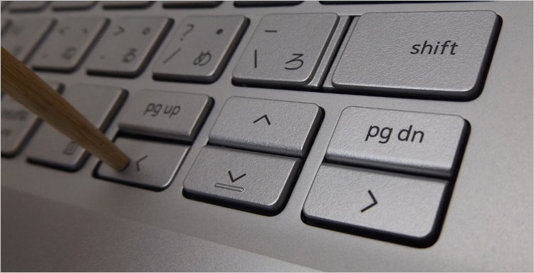 カーソルキーでは段差がほしいところだ。「上キー」は縦幅のリーチが短くPgUp/PgDnに挟まれているため押しづらく、指先を立てて突っつく押下となる。