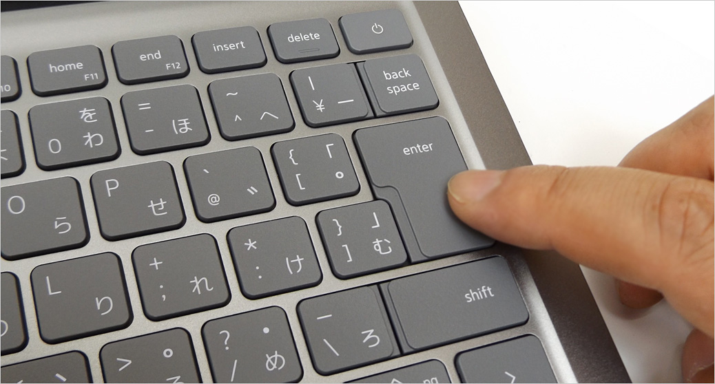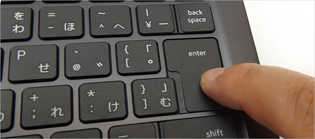 各キーのアップ。従来のキーボードより大きくなったEnterキー、BackSpace、右Shiftなど。