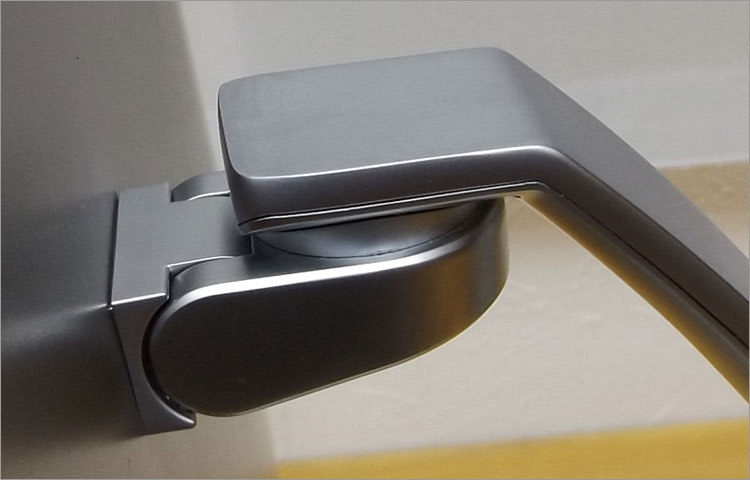付け根部分は、チルト(前後の角度調整)および、スイベル(左右の角度調整)が可能な機構となっている。