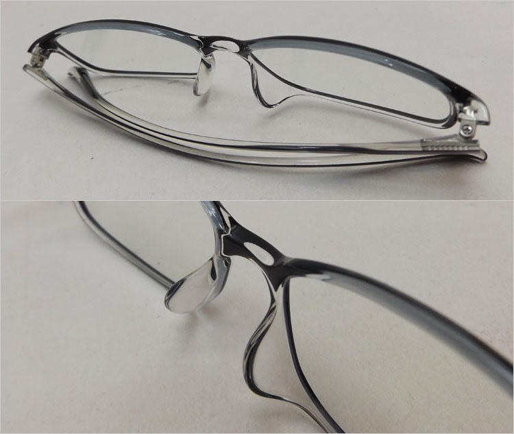 サイトでは、「フレームに超軽量素材を採用し、形状をより薄く・軽く仕上げることができました」とある。さらに「頭部をやさしく包み込み耳裏にかかる負担も軽減する「3Dフィットテンプル」とある。素材の弾力を生かした2段階のカーブが機能的特長だそうだ。