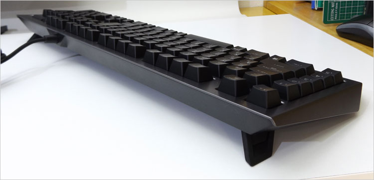 キートップは湾曲しており、指先にフィットする形状。キーストロークも深く打鍵感がある。メカニカル式なので、一般的なメンブレン式のようなグニュグニュ感はない。