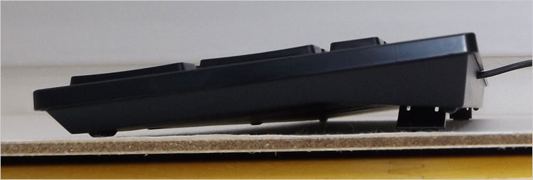 メディア・コントロールキーはファンクションキーと兼用、PrintScreenキーなど一部も兼用となっており、Fnキーと組み合わせるタイプだ。せっかくのデスクトップ用キーボードなのに・・という不満があるだろうが、その分、キーピッチを犠牲にすることなく、ややコンパクトに設計できているようだ。