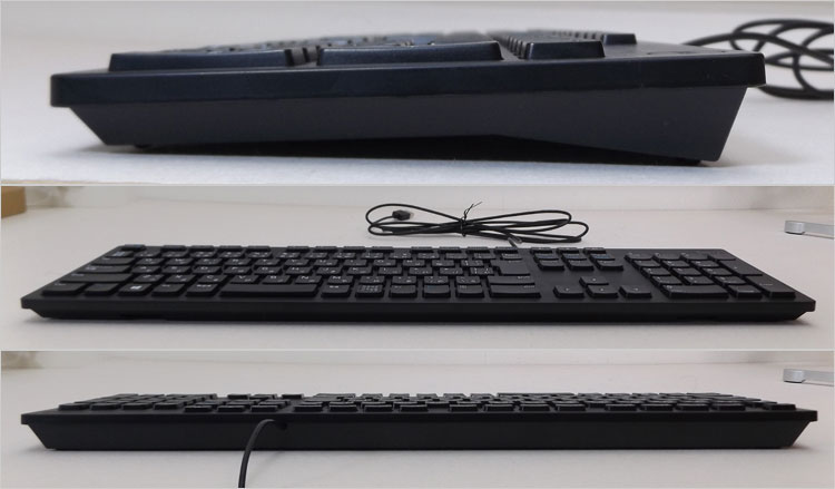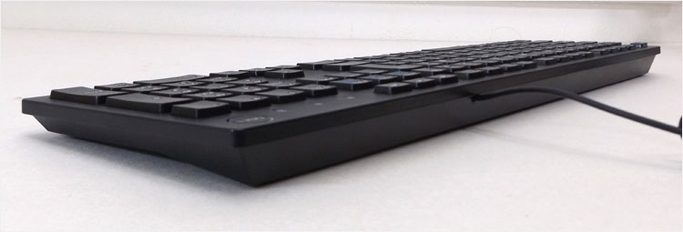 KB216dには、XPS 8930レビュー(2019年8月)において遭遇。従来のKB216tとの違いが発見できず。とりあえず、KB216dの写真をもとに紹介する。材質はポリカーボネート(工業プラスチック)で、基本的には1000円そこらでありそうなエントリーキーボード。言うまでもなくメンブレン式。キー配列に癖もなくスタンダードなので、わりと万人受けすると思われる。縁があまりないデザインなので、省スペース感がある。いまや定番となったアイソレーション・キーボードを採用している。