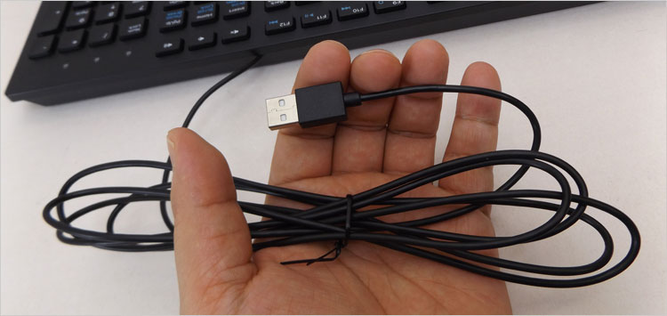 KB216dのサイズは幅44cm、奥行き12.5cm。重量は422g。キーのサイズを犠牲にしていないテンキー付きのキーボードとしてはコンパクトなボディ。とくに奥行きが短く、省スペースで扱える。