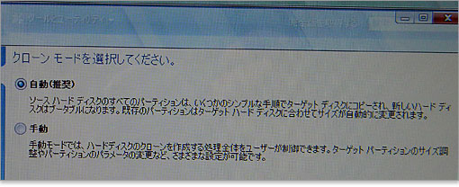 クローンモードの選択。「自動」で問題なし。