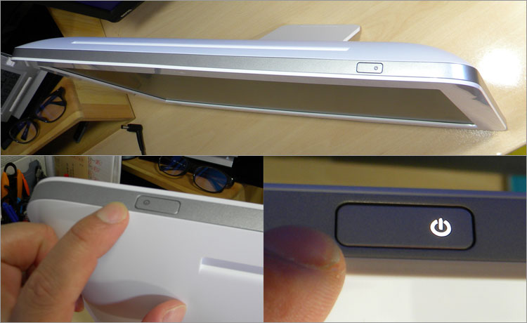 上部に電源ボタンを配置しており、起動時は電源マークが白く点灯します。