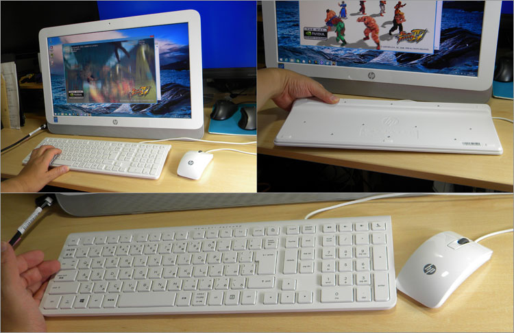 なお、標準付属は、有線タイプのキーボードとマウスです。PCにあわせてホワイトカラーでした。