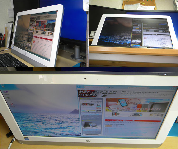 極度な角度からは視野角に難が生じますが、向き合って操作する分には問題ありません。TNパネル採用ってところでしょう。