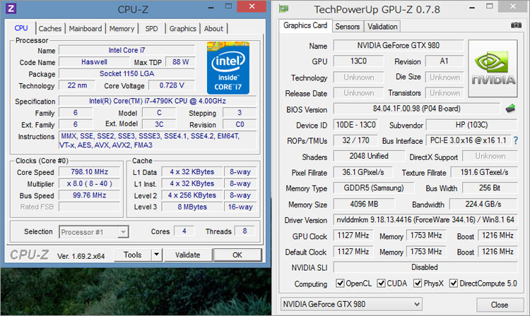 Core i7-4790KとGeForce GTX 980のパフォーマンス