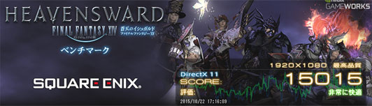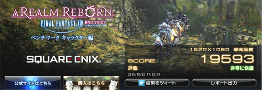2015年6月発売。 新マップ、新ジョブ、新種族などが追加された新バージョン 。ベンチマークはDX11でチェック。 1920×1080 最高品質 フルスクリーンモード SCORE = 15015