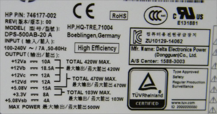 市販と同じATX規格の電源ユニットを搭載しており、総容量500Wを採用している。+12Vは4系統もあり合計のMAXは420W。