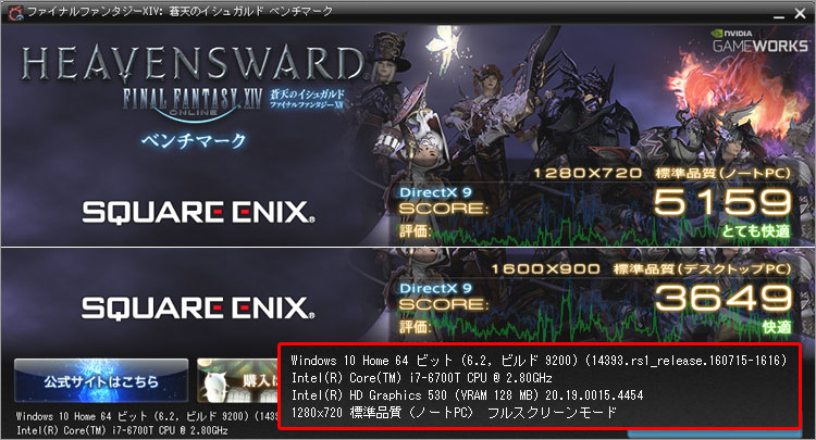 っファイナルファンタジーXIV: 蒼天のイシュガルドで、「とても快適」を目指すなら、DirectX 9、1280×720 、ノートPCの標準品質までハードルを下げる必要がある。