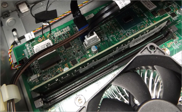 メモリスロットの隣に無線LANカードを搭載。