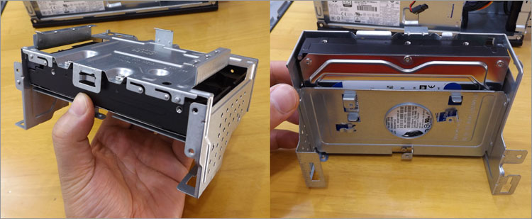マウンタに取り付けられている3.5インチHDDの様子。