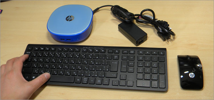 HPでサポートされている「ワイヤレス日本語キーボード&ワイヤレスマウス」と比べて分かるように、Stream Mini 200-020jpはすこぶるコンパクト。