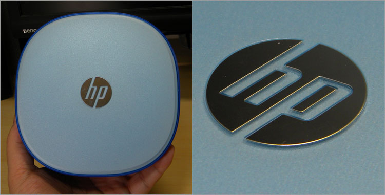 天面は水色。ただの塗装ではなく、すりガラス風のクリアパネルが覆っており、hpロゴが少し浮いたような演出となっています。
