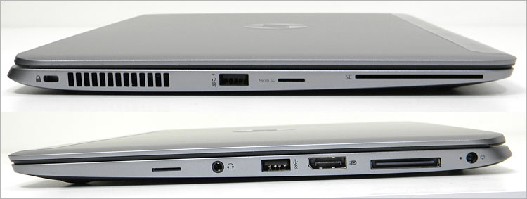 ヒンジの隙間にも排気口があるため、長時間の高負荷には向かない設計のように思えます。しかし、そもそもEliteBook Folio 1040 G1は低消費電力設計であり、モデルの用途からして懸念ポイントにはならないでしょう。また、左側面にも排気口があるのでなおさら問題ないと思います。